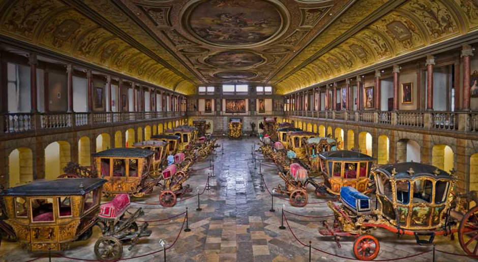 Visita ao Museu dos Coches, fundado em 1905 por D. Amélia, esposa do rei D. Luis. Neste museu podemos ver coches que abrangem três séculos e vão dos mais simples aos mais sofisticados.